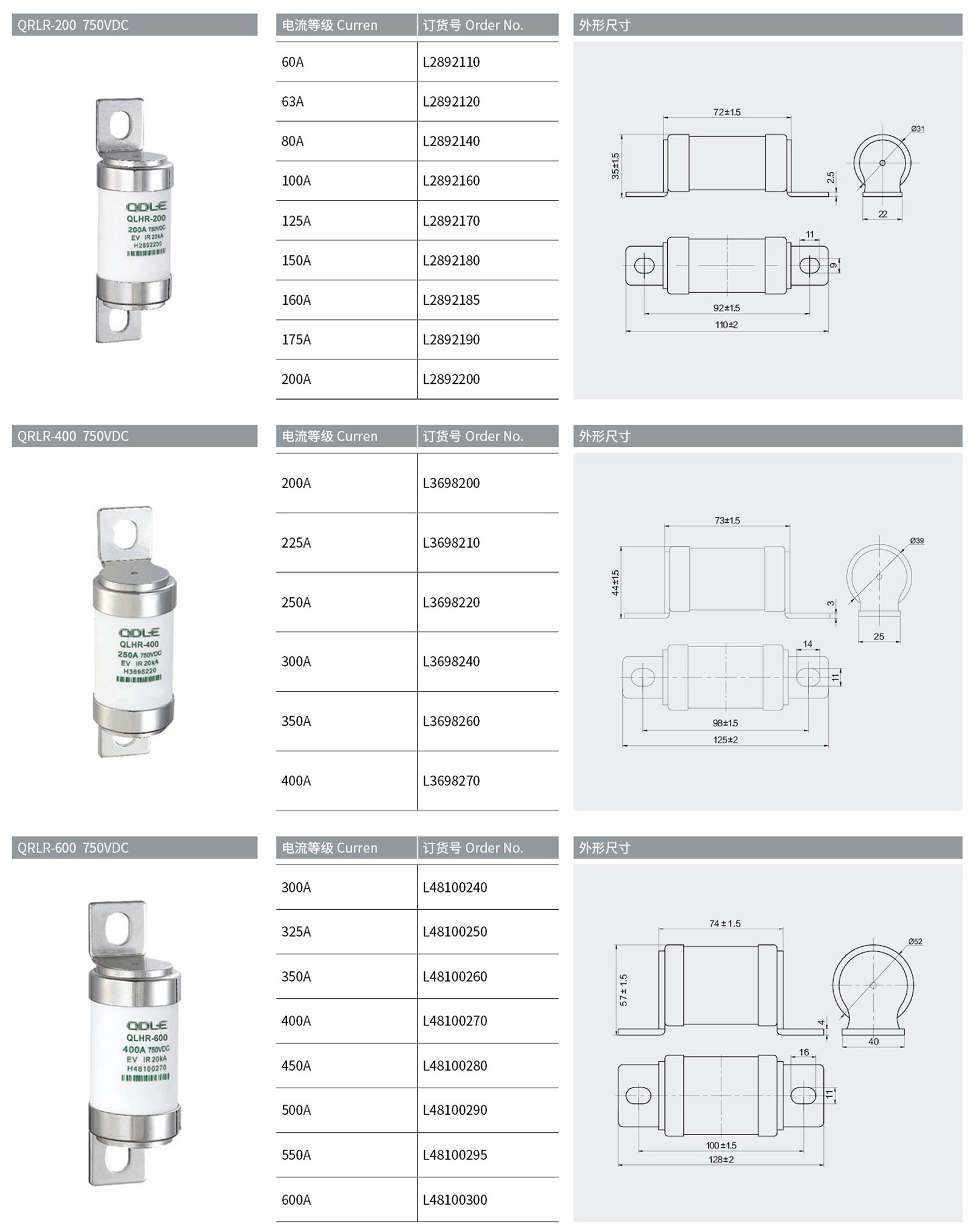 QRL系列新能源汽车熔断器